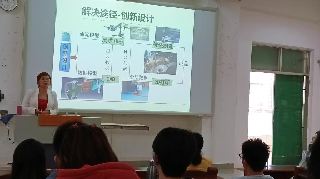 报告会上,邱教授结合自身的实践经验和及其团队近年来科研成果,理论联系实际,详细阐述了创新设计、工业设计与创业;CAD及其在3D打印中的重要作用;逆向工程(快速反求技术)原理及应用;3D打印原理及应用;快速模具;3D打印在各个领域的应用;3D打印的最新研究及未来展望。邱教授指出,3D打印涉及机械设计、新材料、软件控制和光热物理等多个学科,在汽车、航空航天、医疗和文化创意等多个领域具有广泛的发展前景。在提问互动环节,邱教授详细、耐心地解答师生提出的问题,她的精彩讲座让大家对智能制造技术和领域有了更多的认识,拓宽了专业和学科研究视野。
