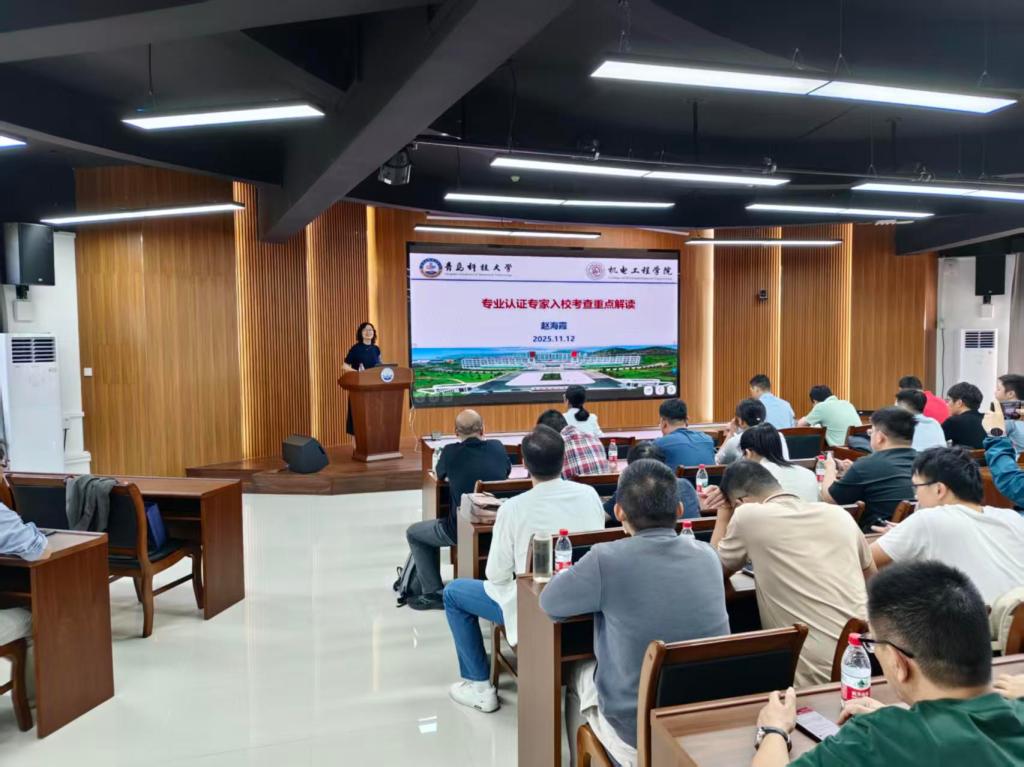 为迎接12月7日工程教育专业认证专家入校考查,全面做好认证准备工作,2025年11月12日下午,williamhill威廉希尔官网在海创楼(创新创业学院)303室举行了工程教育专业认证专家入校考查专题培训会,教育部工程教育认证专家青岛科技大学赵海霞教授做了《专业认证专家入校考查重点解读》主题报告,学院领导、机制专业必修课任课教师及其他相关教师参加了会议,会议由刘强副院长主持。