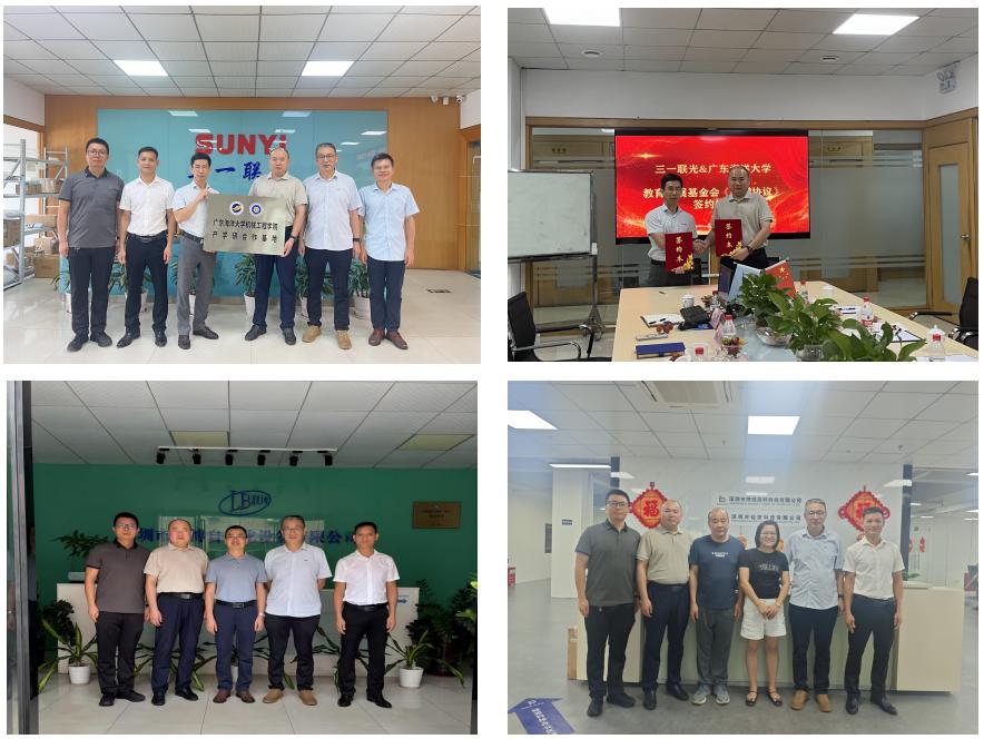 在深圳市三一联光智能设备股份有限公司,双方就产学研合作和产教融合展开深度交流,举行了产学研合作基地授牌仪式,并签署30万元教育发展基金捐赠协议。双方还围绕捐赠资金使用方向和“三一联光奖学金”实施细则修订事宜展开研讨。