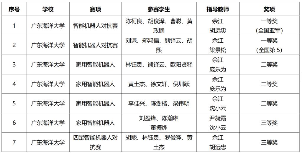 第七届中国高校智能机器人创意大赛广东海洋大学获奖名单
