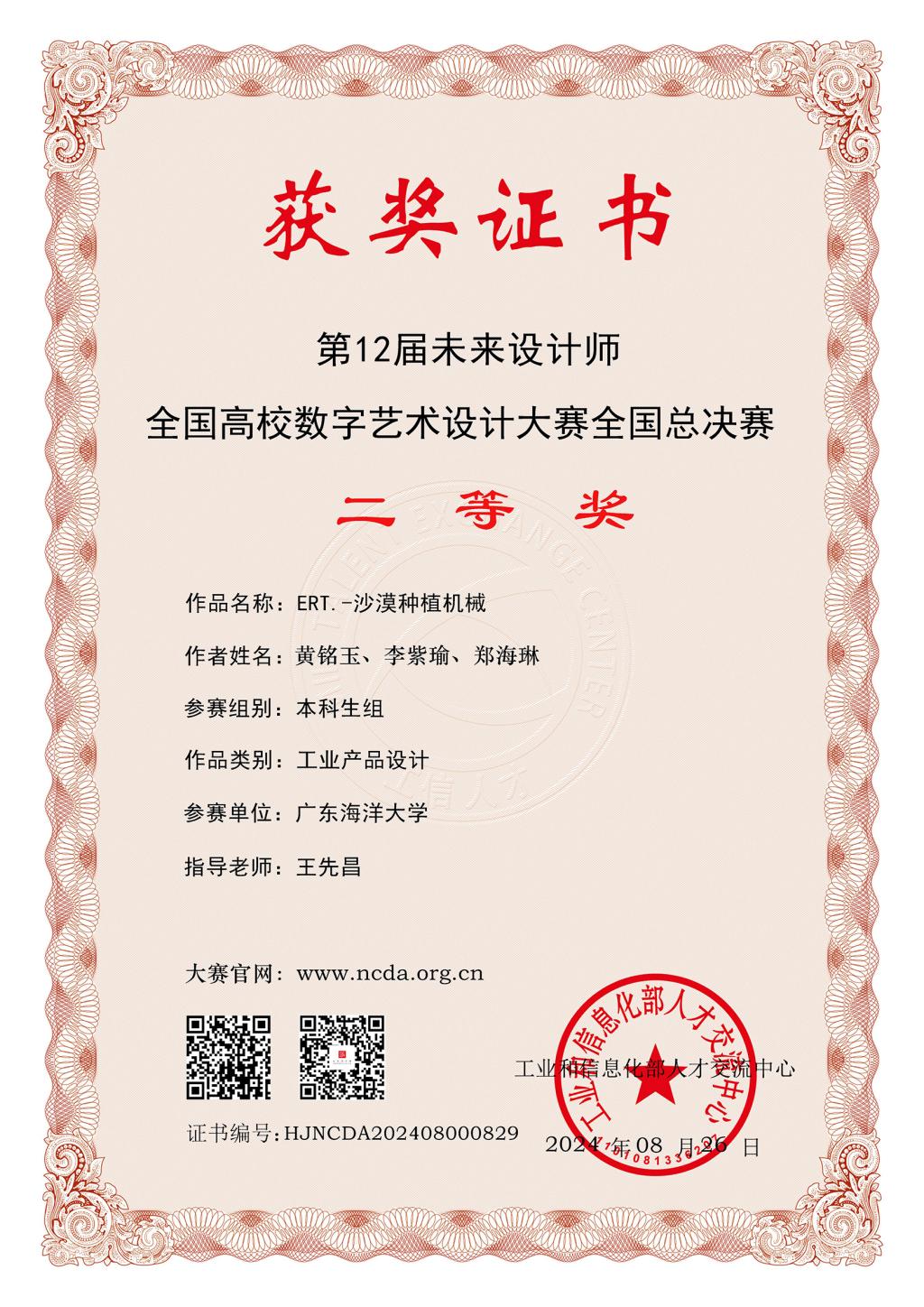 1 广东海洋大学 ERT.-沙漠种植机械 黄铭玉,李紫瑜,郑海琳 王先昌 全国二等奖