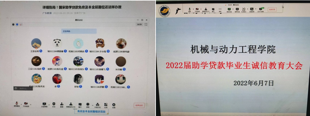 为了进一步提高助学贷款毕业生诚信、感恩意识,6月7日晚,机械与动力工程学院通过腾讯会议召开了国家助学贷款毕业生诚信教育会议,学院助学贷款专项工作老师王禁以及2022届助学贷款毕业生(含生源地助学贷款)共41人参加了会议。