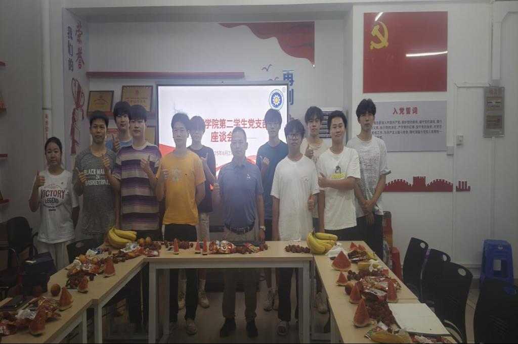 2025年6月23日,在毕业生离校前夕,williamhill威廉希尔官网第二学生党支部精心组织召开“青春向党·扬帆启航”主题座谈会,为即将踏上新征程的毕业生党员上好离校前的“最后一课”。座谈会由党支部书记庞乐为同志主持,学院团委书记闫竟豪、辅导员陈鹏卿出席并与毕业生党员亲切交流。