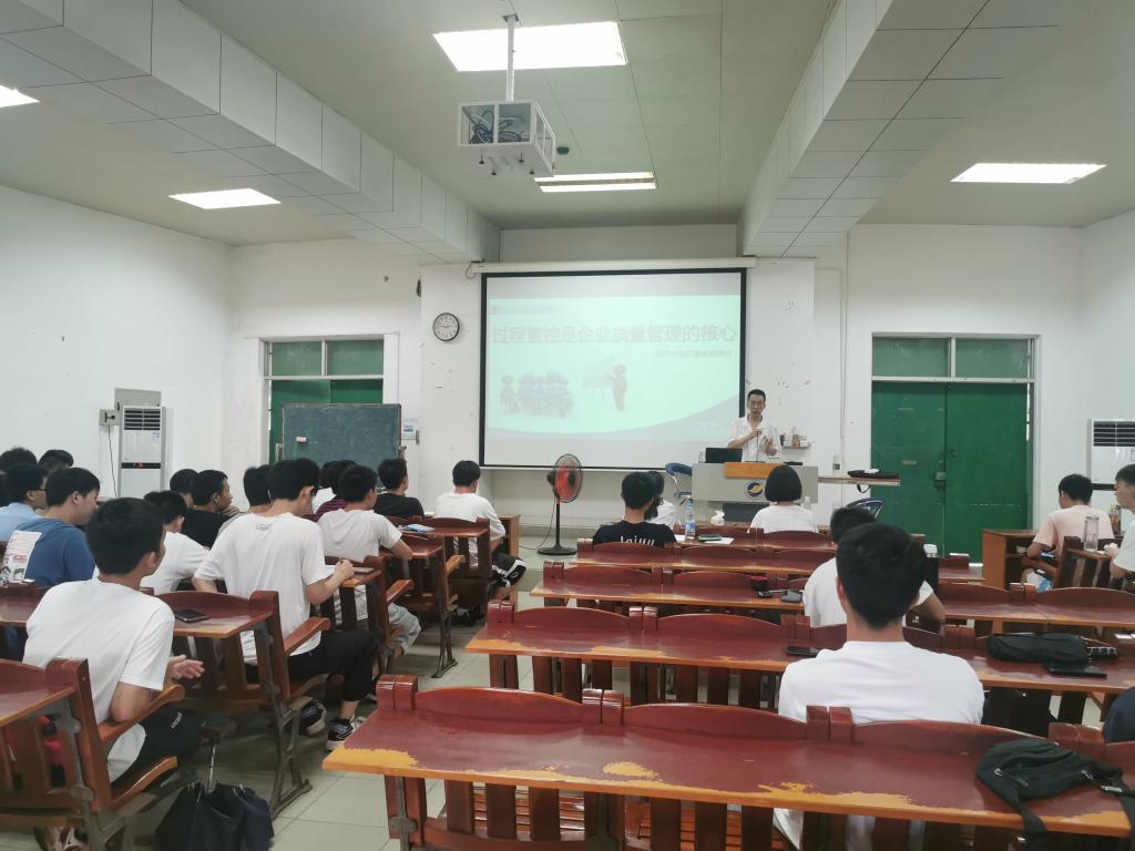 乔月忠部长和张素萍工程师根据企业实际和长期工作经验做了题为《现代企业质量保证与设计图纸规范》的报告,他们从德利公司质量保证体制现状、企业质量过程管控、实物部件设计流程、装配图与零件图尺寸标注及国内外图纸规范对比等六方面的内容做了详细的介绍。在报告中,乔月忠部长结合工作实践讲授了质量过程管控定义并结合实际工作对出现的问题和解决的办法进行了精彩的论述,让在座的师生感受到了与校园课堂不一样的课程,让学生对现代企业质量保证与设计图纸规范有了更深刻的认识和理解。