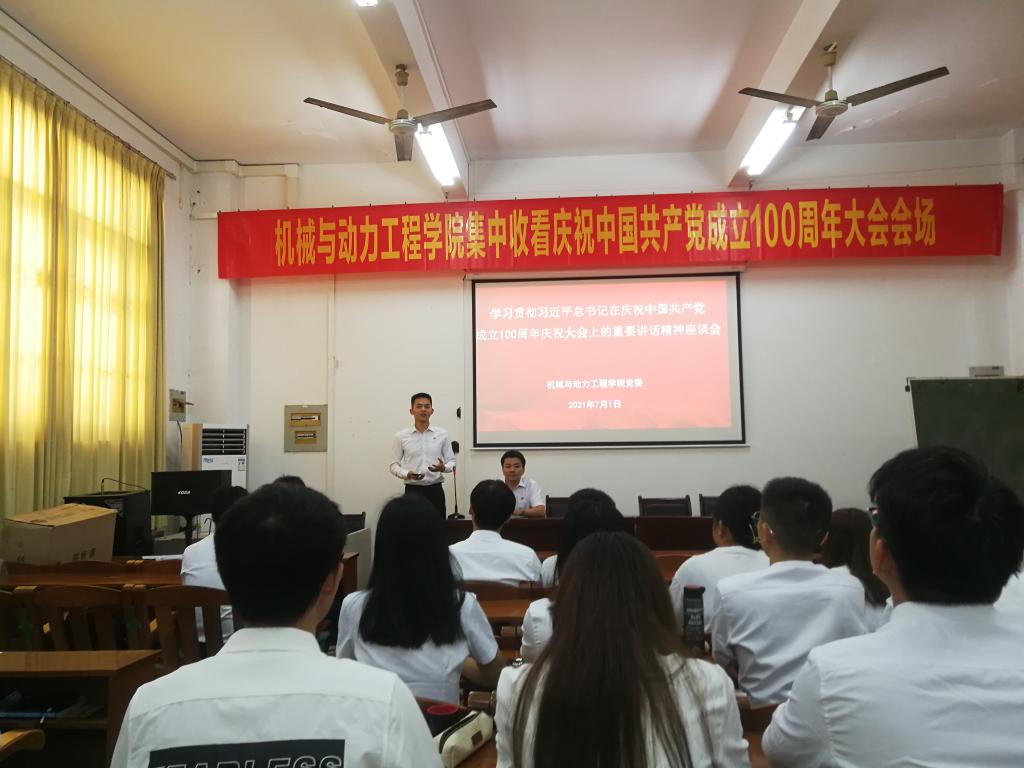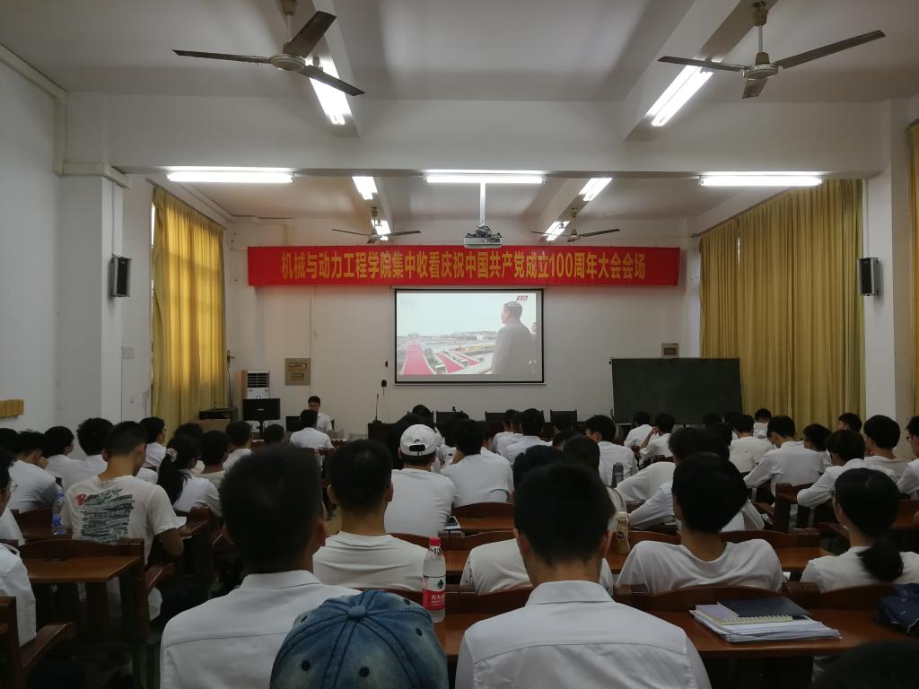 7月1日上午,庆祝中国共产党成立100周年大会在北京隆重举行,中共中央总书记、国家主席、中央军委主席习近平发表重要讲话。机械与动力工程学院党委组织师生党员干部群众共120余人在科技楼213和工程训练中心102会议室通过网络电视直播收听收看大会盛况,聆听了习近平总书记重要讲话,并在座谈会上畅谈了学习体会和感受。