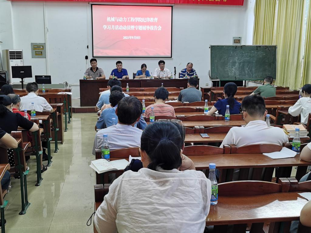 9月8日下午,机械与动力工程学院在工程训练中心102会议室召开2021年纪律教育学习月活动动员暨专题辅导报告会,会议由学院院长俞国燕主持。学院全体教职工党员和科级以上干部共70人参加了会议。