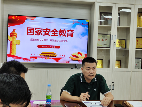 2022年6月28日,机械与动力工程学院党委副书记钟桂安在科技楼213会议室为工业工程及工业设计专业联合学生党支部全体党员、发展对象讲党课,教育引导学生们增强国家安全意识,共同维护国家安全。