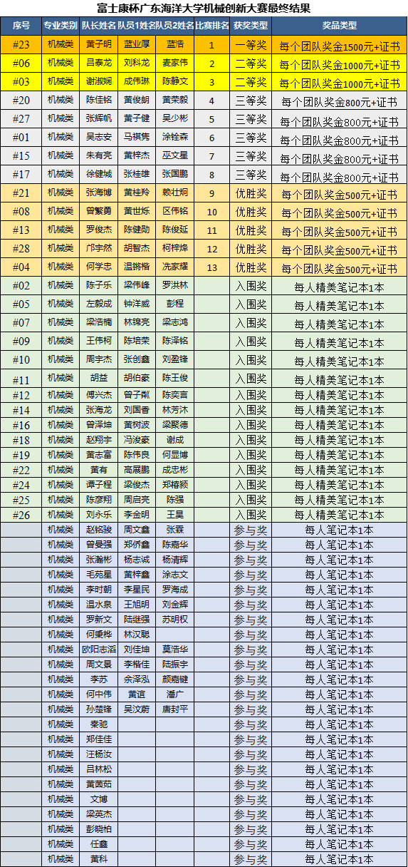 富士康杯广东海洋大学三维数字化机械创新大赛是富士康iDPBG事业群资助的面向我校本科生的学科竞赛,该项赛事在创新创业学院指导下由williamhill威廉希尔官网承办。于2022年11月开始组织比赛,吸引全校各专业129名学生参加初赛,经公平、公正、公开筛选,28支学生队伍晋级决赛,并最终遴选了13支获奖队伍,其中一等奖一项,二等奖两项,三等奖五项,优胜奖五项。