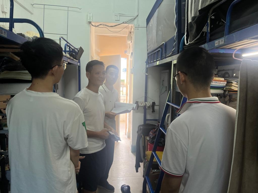 在走访检查宿舍过程中,学院党委副书记梁吉霖和全体辅导员老师与同学亲切交谈并就暑期留校学生安全重点叮嘱。一是强调宿舍安全相关事宜,提醒大家注意防火防电防溺水、谨防诈骗,强调禁止使用违规电器,禁止在宿舍、实验室等场所给电动车电瓶进行充电;二是叮嘱学生要维护宿舍卫生环境,保持宿舍内务整洁,加强文明宿舍创建;三是叮嘱同学们在假期过程中注意劳逸结合,合理安排考研复习、科研和竞赛任务;四是叮嘱同学们做到文明上网、模范遵守学校规章制度;五是叮嘱同学们关注并做好台风防御。