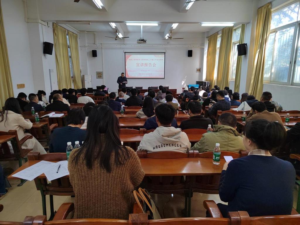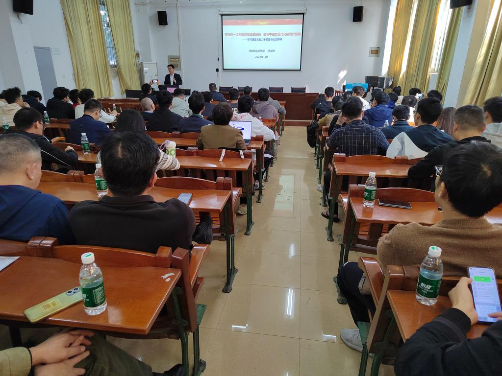 为进一步深入学习贯彻党的二十届三中全会精神,12月18日下午,williamhill威廉希尔官网邀请学校党委理论宣讲团第四届成员,马克思主义学院巩建华教授在工程训练中心102举行学习贯彻党的二十届三中全会精神宣讲报告会。报告会由学院党委书记张懿主持,全院80余名教职工和学生党员参会。