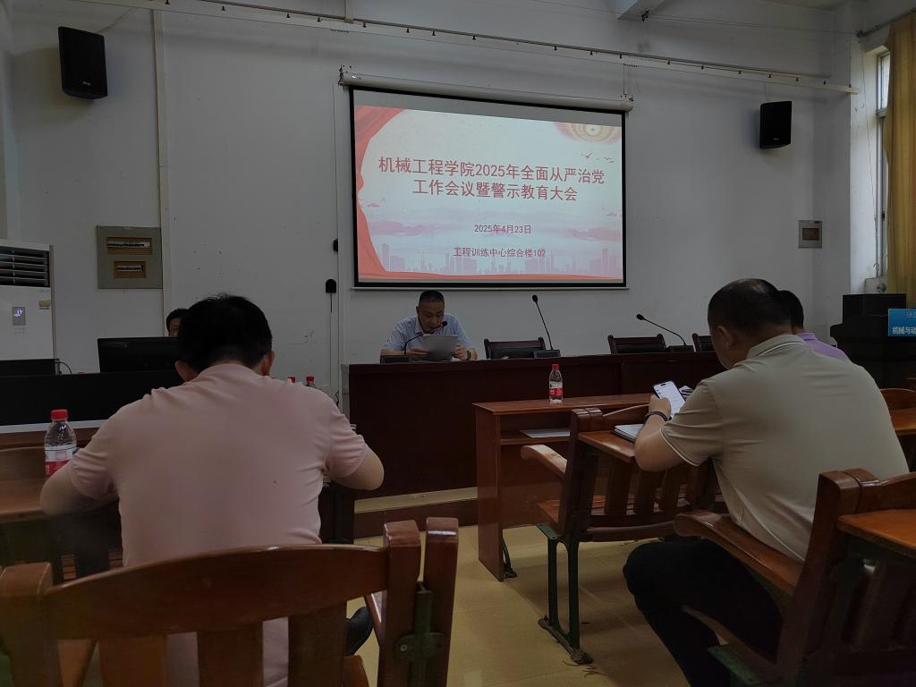 4月23日,williamhill威廉希尔官网在工程训练中心102室召开全面从严治党暨警示教育会,深入学习贯彻习近平总书记关于党的建设的重要思想和关于党的自我革命的重要思想,部署2025年全面从严治党工作任务。学院党委书记张懿主持会议,学院全体教职工参加。
